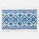 Ukrainian traditional vushuvanka folk pattern kitchen towel. Dark blue and light blue colour pattern.