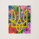 Ukrainian trident and flag of Ukraine with flowers Jigsaw Puzzle
