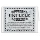 Official Ukulele License. There are many activities involving various equipment, such as operating an automobile, aeroplane, etc., that require specialised training and licenses. Making music is something that usually requires training: lessons, practice, and rehearsals. Shouldn't it be required of the prospective musicians that they receive a license to operate the equipment, i.e., their musical instrument?