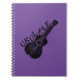 Black drawing with customised text. Custom ukulele notebook with purple background. Original design. Gift idea for ukulele lovers.