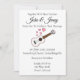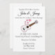 This contemporary wedding invitation features my doodle of a ukulele with pink hearts - ideal for uke players and musicians getting married!