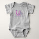 Pretty hand drawing of the letter U monogram text name meaning shirt or baby romper. Ideal for a personalised gift for a baby girl who has a name beginning with U. This example reads Mistress of all. Strong, bright and confident or you can customise the text with your own name and meaning words if required. Ideal as a new baby girl birth gift, baby shower gift, birthday or christening gift. If you need help with your own personalised name please contact me. Capital letter U typographical hearts and flowers drawing and graphic conversion in pastel shades of pink and purple uniquely created by Sarah Trett. www.sarahtrett.com for www.mylittleeden.com