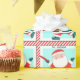 Ultimate Frisbee Christmas holiday gift wrap featuring cartoon Santa playing frisbee.