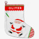 Creative ultimate frisbee Christmas stocking holiday gift featuring cartoon Santa throwing a disc. To personalise edit text to add his or her name.