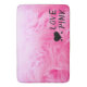 Featuring bright pink fuzzy faux fur with 3 black heart decals and "love pink" text that is fully customisable. Change the text, font, size, colour and placement for the best experience.