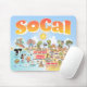 Bright and colourful scene offers a spectacular view of Southern California - wacky characters frolic on the beach and desert of SoCal showcasing Los Angeles, San Diego, Orange County, Santa Barbara, Riverside, Palm Springs, Anza Borrego and Joshua Tree parks as well as the border cities of Tijuana, Tecate and Mexicali. This charming scene has it all – a surfer hangs ten while a killer whale leaps out of the water, zoo animals greet the tourists, a muscular dude flexes his pecs as a T-Rex roars a challenge and a tank moves into position and much more…