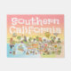 Bright and charming cartoon offers a whimsical view of Southern California - fun and friendly characters enjoy the warm California sun showcasing Los Angeles, San Diego, Anaheim, Long Beach, Santa Barbara, Riverside, Palm Springs and El Centro and many other cities as well as Lake Arrowhead, Big Bear, Joshua Tree, Anza Borrego, and the Salton Sea plus the border city of Tijuana.