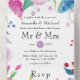 Hand-painted watercolor roses wedding invite featuring colour of the year 2018 ultra violet with shades of blue and pink with sage green flourishes.