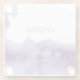 Adorable and editable wedding glass coaster template, beautifully romantic with with elegant purple and ultraviolet watercolor splashes on white paper. A timeless design that's perfect for formal events in any season, editable with Name and Date.