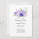 Mail bridal shower watercolor floral invitation featuring colour of the year 2018 ultra violet with shades of purple and sage green accents. Flowers include hydrangea, lavender, peonies and roses.