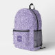 Ultra violet light purple glitter sparkle Monogram Printed Backpack. Personalise unique fashionable sparkly bag for her. Ultra violet light purple glitter sparkles. Beautiful girly Ultra Violet light Purple lilac faux glitter sparkles. Photo of violet purple sparkles not actual glitters!