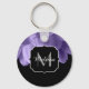 Ultra violet purple flower petals black Monogram Key Ring