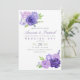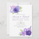 Watercolor floral wedding invitation featuring colour of the year 2018 ultra violet with shades of purple and sage green accents. Flowers include hydrangea, lavender, peonies and roses.