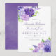 Watercolor floral wedding invitation featuring colour of the year 2018 ultra violet with shades of purple and sage green accents. Flowers include hydrangea, lavender, peonies and roses.