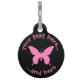 Pink ulysses butterfly. Vector icon with customisable colour. Custom background colour. Two custom text fields on circle. Custom text at back side.
