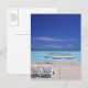 Umbrella and two lounge chairs on beach, Miami Postcard