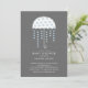 Modern blue hearts with polka dot umbrella for a baby boys shower set on a grey linen look background.
