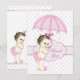 Girl baby shower thank you card with sweet pink baby girl with umbrella and pearl rain drops on a pretty pink and white background. You can easily customise this adorable flat style baby girl shower thank you card by adding your message in the font style, colour and wording of your choice, or leave it blank to add your handwritten message. Some graphics artwork©Delightful-Doodles.
