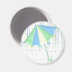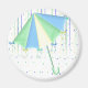 Baby shower buttons and magnets featuring an umbrella with soft pastel baby colours of blue, green, and yellow!