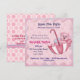 Sweet baby girl shower invitation with adorable pink teddy bear riding in an umbrella, big dots and other special touches. Customise with Your information.
