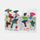Artist: Stella May DaCosta | A group of people walking around in a rain storm with umbrellas