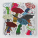 Artist: Stella May DaCosta | A group of people walking around in a rain storm with umbrellas