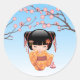 Ume Kokeshi Doll - Japanese Geisha Girl Blue Classic Round Sticker