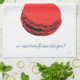 A vibrant and striking graphic image of a red strawberry macaroon with text in French. A delicious accent for the kitchen!