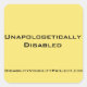 Unapologetically Disabled stickers, square 1 1/2" Sticker