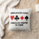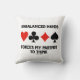 Showcase your wry bridge / duplicate bridge sense of humour with this throw pillow featuring the four card suits along with the saying "Unbalanced Hands Forces My Partner To Think". Make others do a double-take on how you bid and play unbalanced hands with this bridge saying throw pillow today!