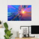 A sunset in unknown realm of liquid land. A very colourful, warm and cool combination of shapes and form in this abstract picture.
