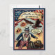 Vintage style card of Uncle Sam lighting fuse on cannon, with baloon text: "Say hello to my little freend"