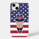 iPhone 14 case with an illustration of Uncle Sam with the American flag as a background, 4th of July patriotic design by Maxi Harmony / Radka Kavalcova