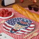 Paper plate with an illustration of Uncle Sam with the American flag as a background, 4th of July patriotic design by Maxi Harmony / Radka Kavalcova