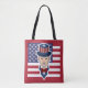 Tote bag with an illustration of Uncle Sam with the American flag as a background, 4th of July patriotic design by Maxi Harmony / Radka Kavalcova, red version