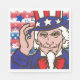 Uncle Sam on a stars and stripes background paper napkins. Perfect for patriotic parties like the 4th of July. Matching cups and plates available.
