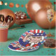 Uncle Sam on a stars and stripes background paper plate. Matching napkins and cups available.