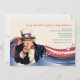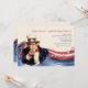 Invite guests to your Fourth of July party with this patriotic design. It features uncle Sam with a red, white and blue star-studded background. Perfect for any patriotic celebration.