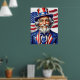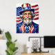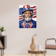 Smiling uncle Sam USA American Icon wearing an American suit and a waving American flag in the background