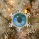 Uncommon Blue Green Eye in Fishbowl Snowflake Pewter Christmas Ornament