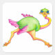 A very uncommon ostrich running flaunting his rainbow-coloured feathers.