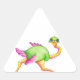 A very uncommon ostrich running flaunting his rainbow-coloured feathers.
