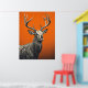 Undead Deer on Bold Orange Backdrop Poster