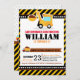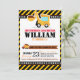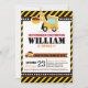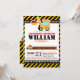 CAUTION! Under Construction! Celebrate your construction Birthday party with our Construction Party Invitation. This under construction invitation features a crane, dirt truck and concrete mixer truck on yellow and black stripes. Perfect for your little builder’s under construction first birthday party or a baby is under construction baby shower.