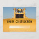 This cool postcard features a yellow construction bulldozer tractor with the personalised message, "Under Construction." Photography created by award-winning photographer Maria Jeffs.