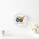 This cute Under Construction Dump Truck design features a cute toy -like blue dump truck with a yellow striped box. There is yellow text that says Under Construction. This design is on a cool clock that is perfect for a child's room, a work shop, or your favorite work or play space.