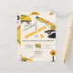 Under Construction Birthday Party Invitation with trucks, crane and tractor. Cute construction themed party invitation. Yellow, orange,white, black and grey colour scheme.