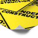 A collection of yellow diamond shaped signs with black printing that says “under construction” makes an interesting industrial or building pattern.