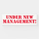 Under New Management banner for display. Red and white. Announce that your business is now under new management.
