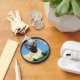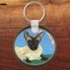 Keychain with detail from a painting of a Siamese cat under the cherry blossoms.